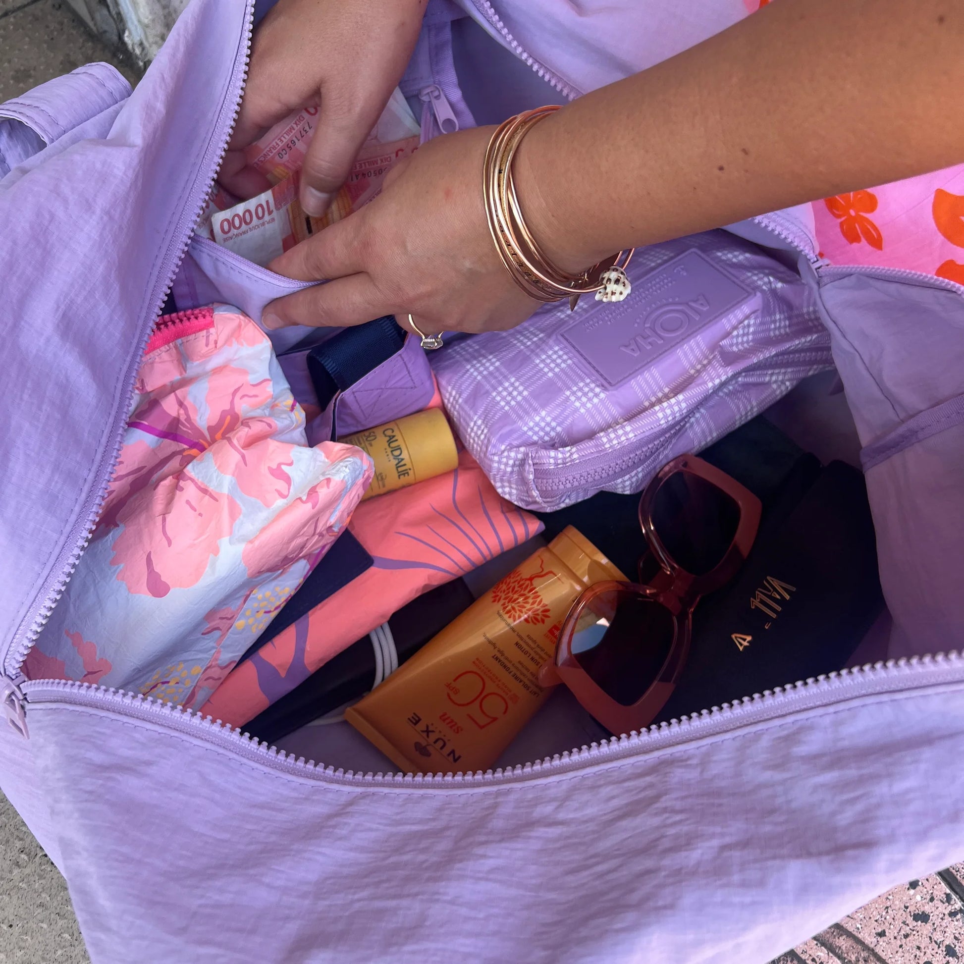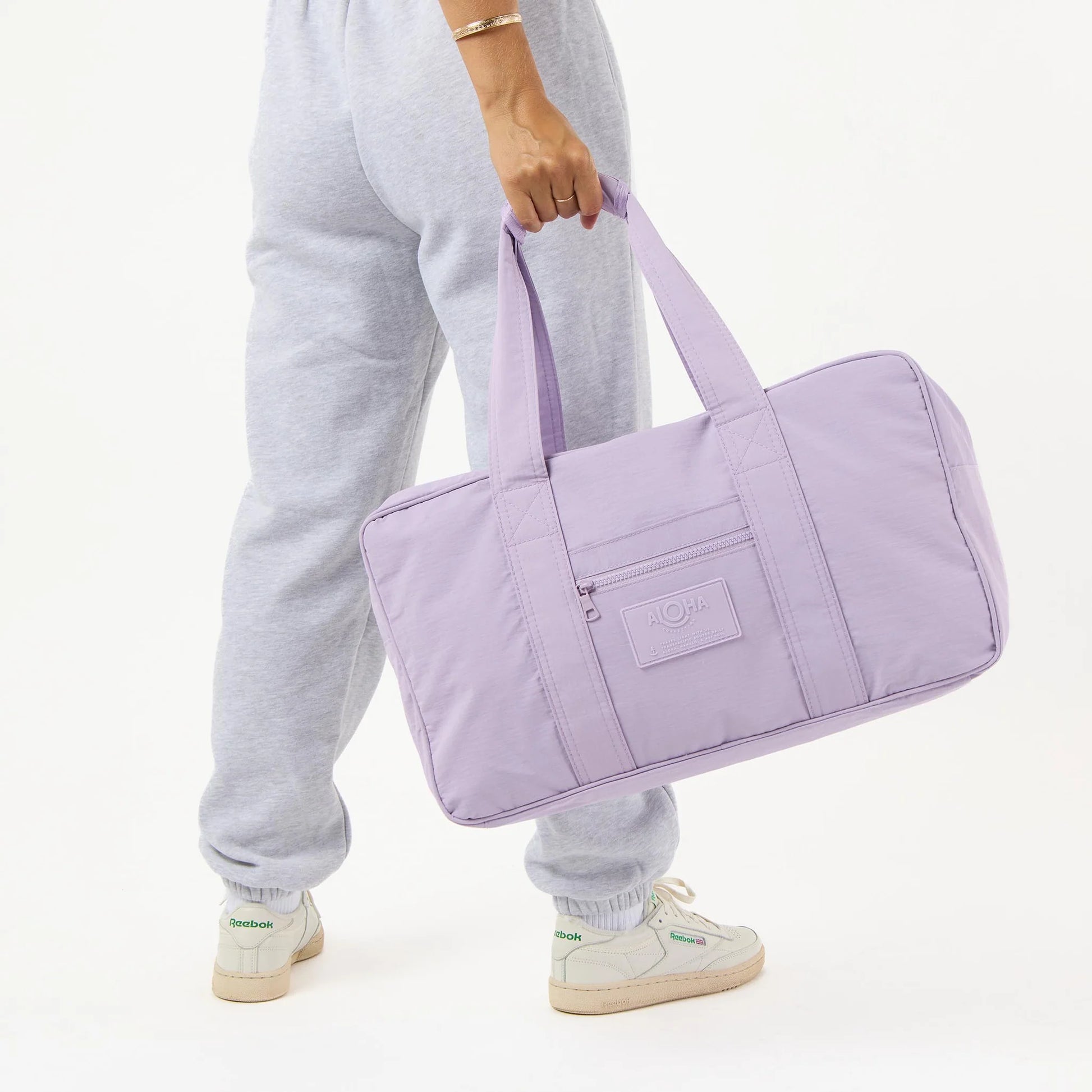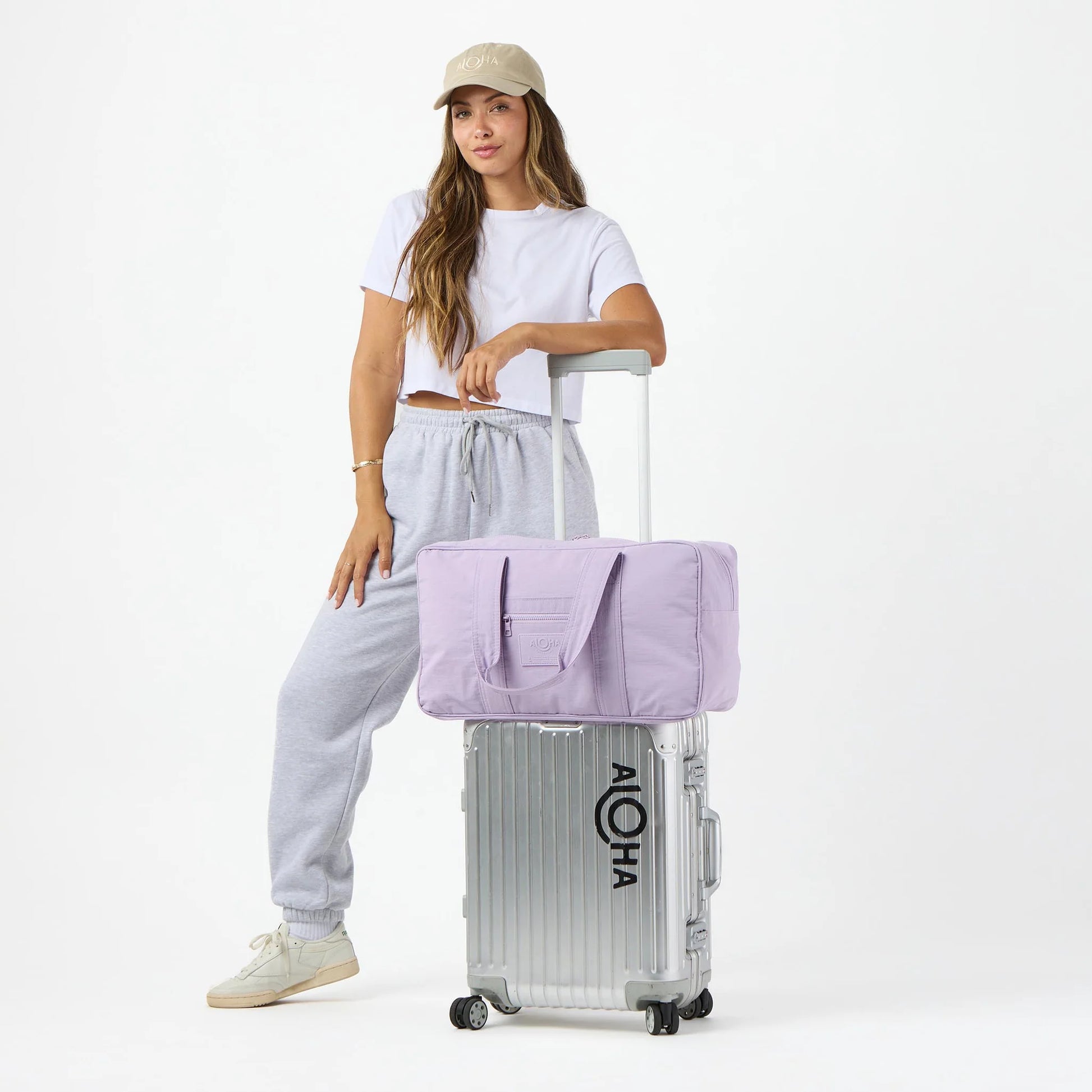 This sleek, lightweight, and durable duffle, crafted from ripstop nylon, seamlessly blends style with functionality. Become a carry-on pro with the built-in trolley sleeve that lets you secure the duffle to your luggage for effortless airport navigation. Keep essentials organized with pockets and carry comfortably with padded handles.