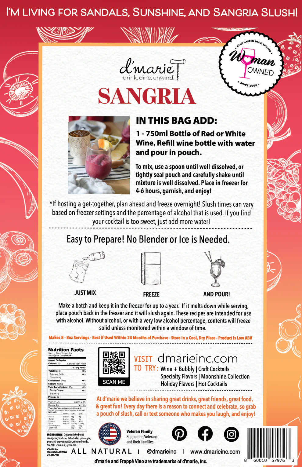 The Sangria Slush Mix is made with real Pineapple, Pear, and Orange!