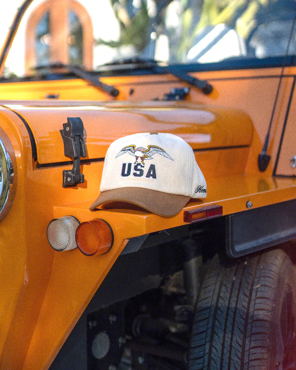 The USA Baseball Hat blends vintage-inspired style with a high crown, unstructured 5-panel design, and 100% cotton construction for a worn-in feel from day one. Featuring bold USA and eagle embroidery on the front, subtle "Hemlock" embroidery on the side, and an adjustable snapback closure, this cap is built for those who carry American spirit wherever they go.