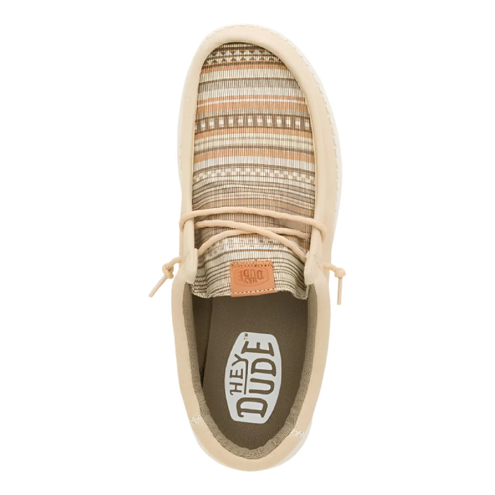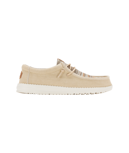 Experience the convenience and versatility of Hey Dude Wally - Surf Shawl with its Wood Ash/Multi Textile upper, elastic laces, and easy-on system. Perfect for travel, this shoe features a removable foam insole and lightweight, flexible outsole for maximum comfort and wearability.